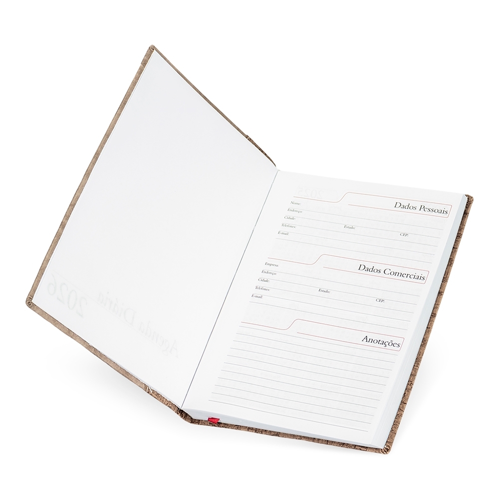 A Agenda Diária 2026 é o brinde corporativo ideal para empresas que desejam impressionar seus clientes e colaboradores. Com uma elegante capa em couro sintético e um marcador de páginas em fita de cetim, ela oferece uma experiência de uso sofisticada e funcional.