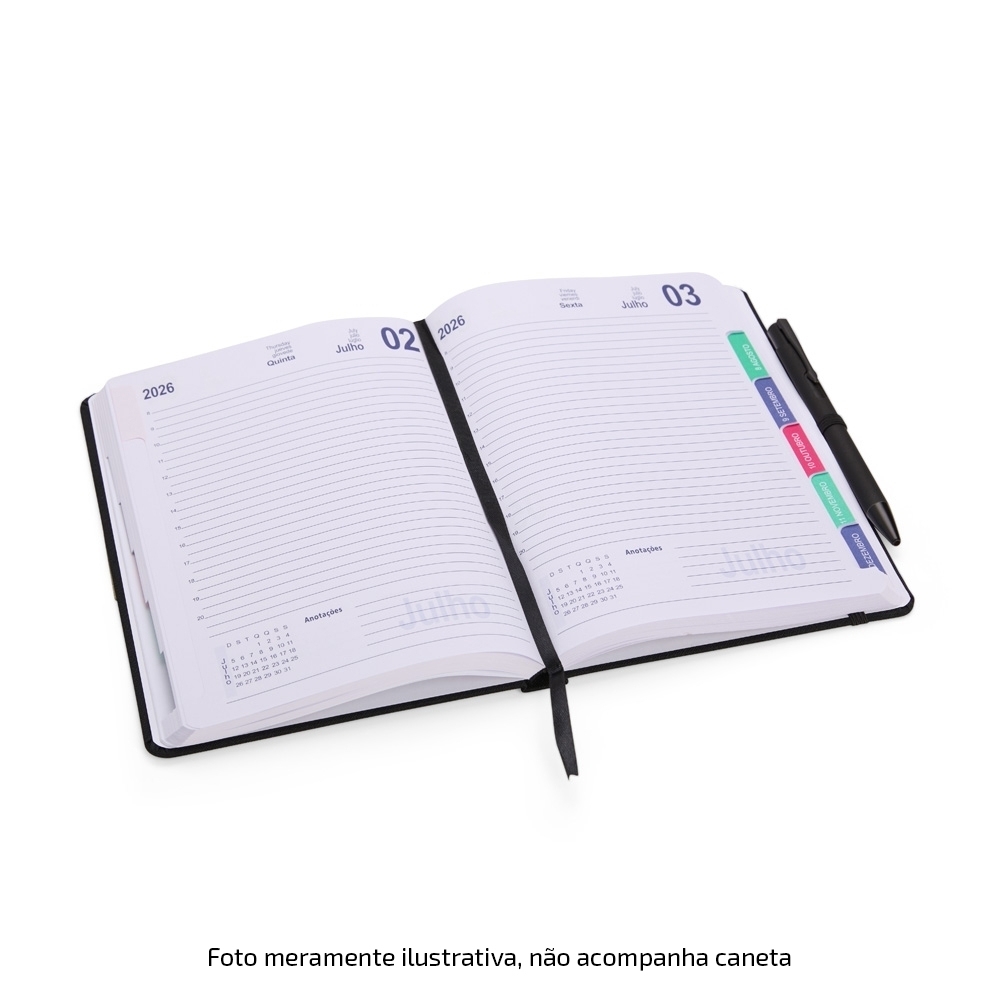 Esta agenda vem com folhas de alta qualidade, proporcionando uma experiência de escrita suave. Suas dimensões são ideais para caber em bolsas e mochilas, tornando-se um acessório prático para o dia a dia.Altura : 21 cm