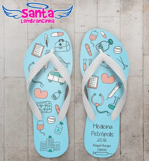 - ✔ Chinelo personalizado produzido em borracha na cor branca.