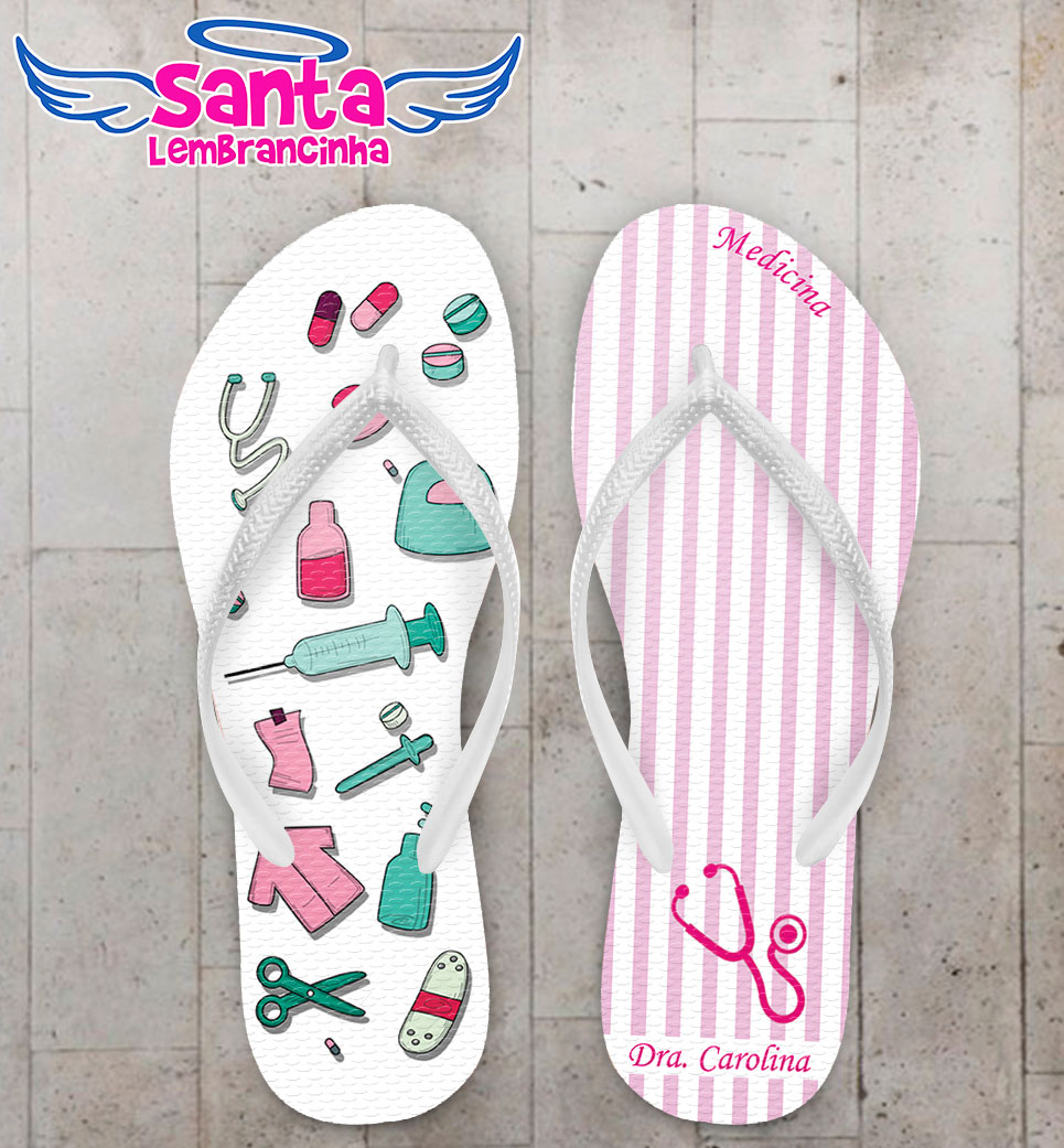 - ✔ Chinelo personalizado produzido em borracha na cor branca.